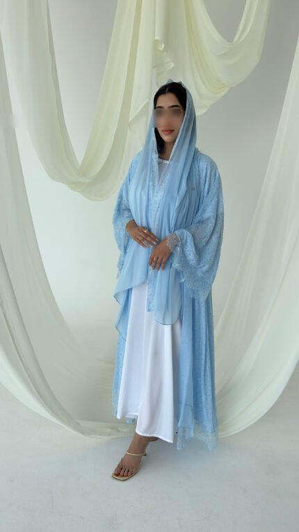 عباية صيفية ناعمة مصممة من قماش الدبل شيفون بخفة وانسيابية، تمنحك راحة وأناقة مثالية لأيام الصيف الحارة، تصميم أنثوي أنيق يناسب الإطلالات اليومية والمناسبات البسيطة.